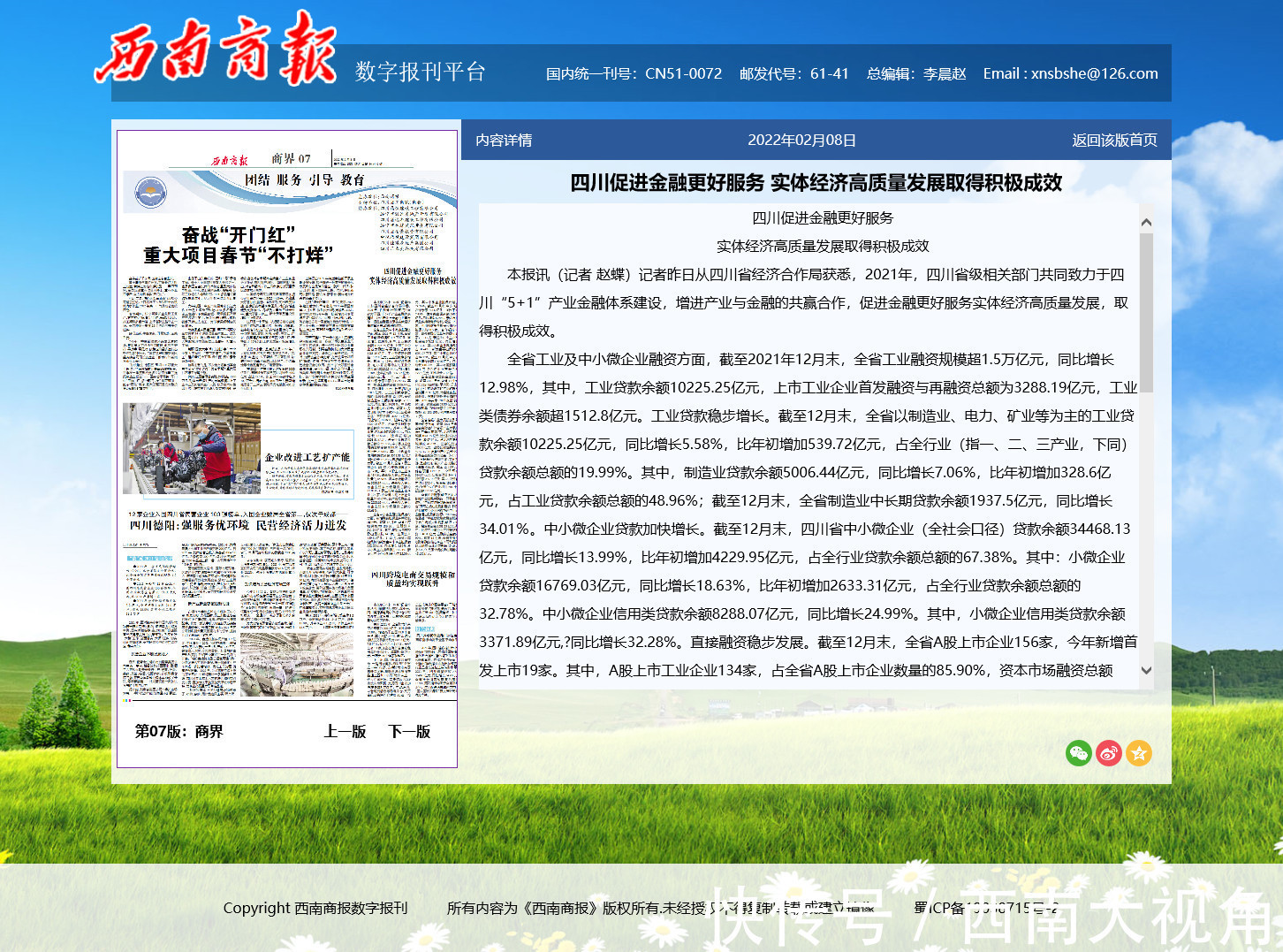 (来源:西南商报 2022年2月8日 第07版:商界 四川促进金融更好服务 实体经济高质量发展取得积极成效)